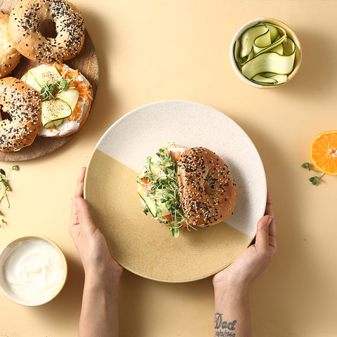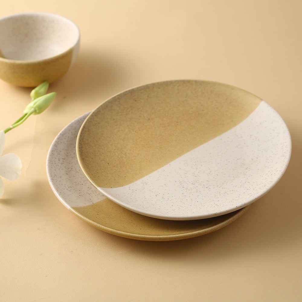 The Teramo collection of premium stoneware is inspired by earthy tones and is a true blend of traditional craft with contemporary forms. These dinner plates in half-n-half tones of yellow and beige is fashionable yet rustic for your dinner table.