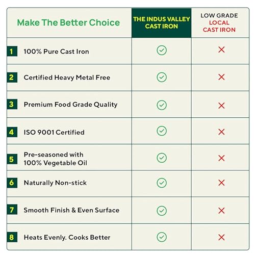 - 💰Money saving investment: Cast iron cookware is long lasting. Why waste money on non-stick tawa every 2 years when you can have a long lasting Cast tawa