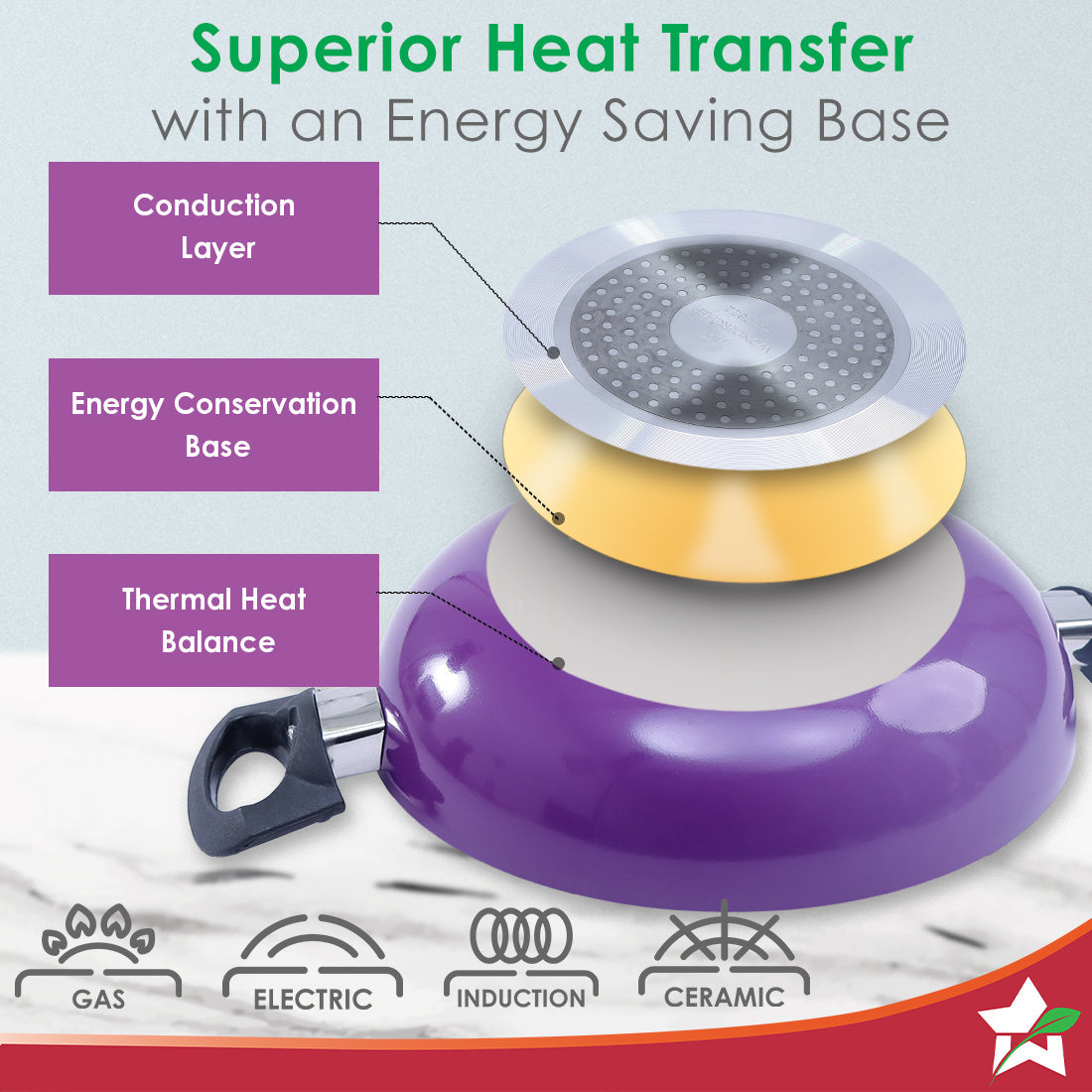 - Energy-efficient:Â Pure grade virgin aluminium offers 9-times better heat conduction, cooking your meals faster while saving energy and time.