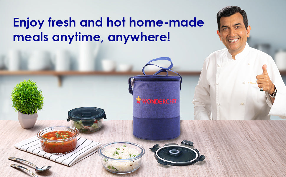 Enjoy delicious home-made meals exactly how you like them – in Wonderchef’s Verona Lunch Box. Comprising of 3 borosilicate glass containers made in 100% food grade material with leak-proof clip lock lids, this product is fridge, freezer and microwave safe, to suit your temperature requirements. Comes with a compact lunch bag so you can carry them easily to your work/college or anywhere else. These lunch boxes are a must-have for any home – be it for packing lunch or storing food!