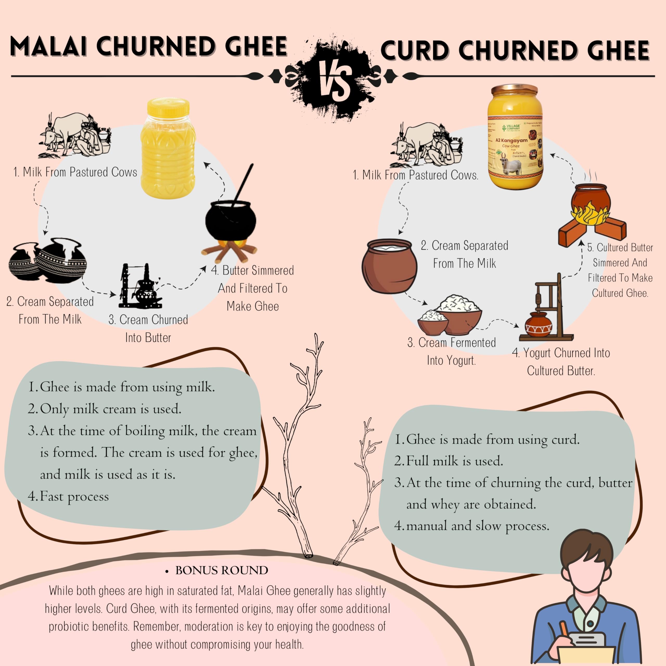 - PURE DESI GHEE: The finest A2 ghee from heritage Kangayam cows from the villages of Tamil Nadu, renowned for their superior A2 milk quality.