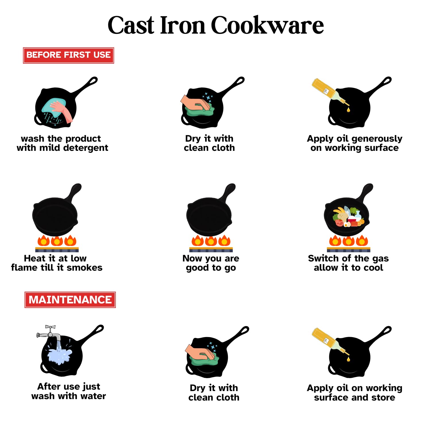 - 𝐋𝐎𝐍𝐆-𝐋𝐀𝐒𝐓𝐈𝐍𝐆: With proper care, Vinod Legacy Cast Iron cookware can be used for many years or even generations.