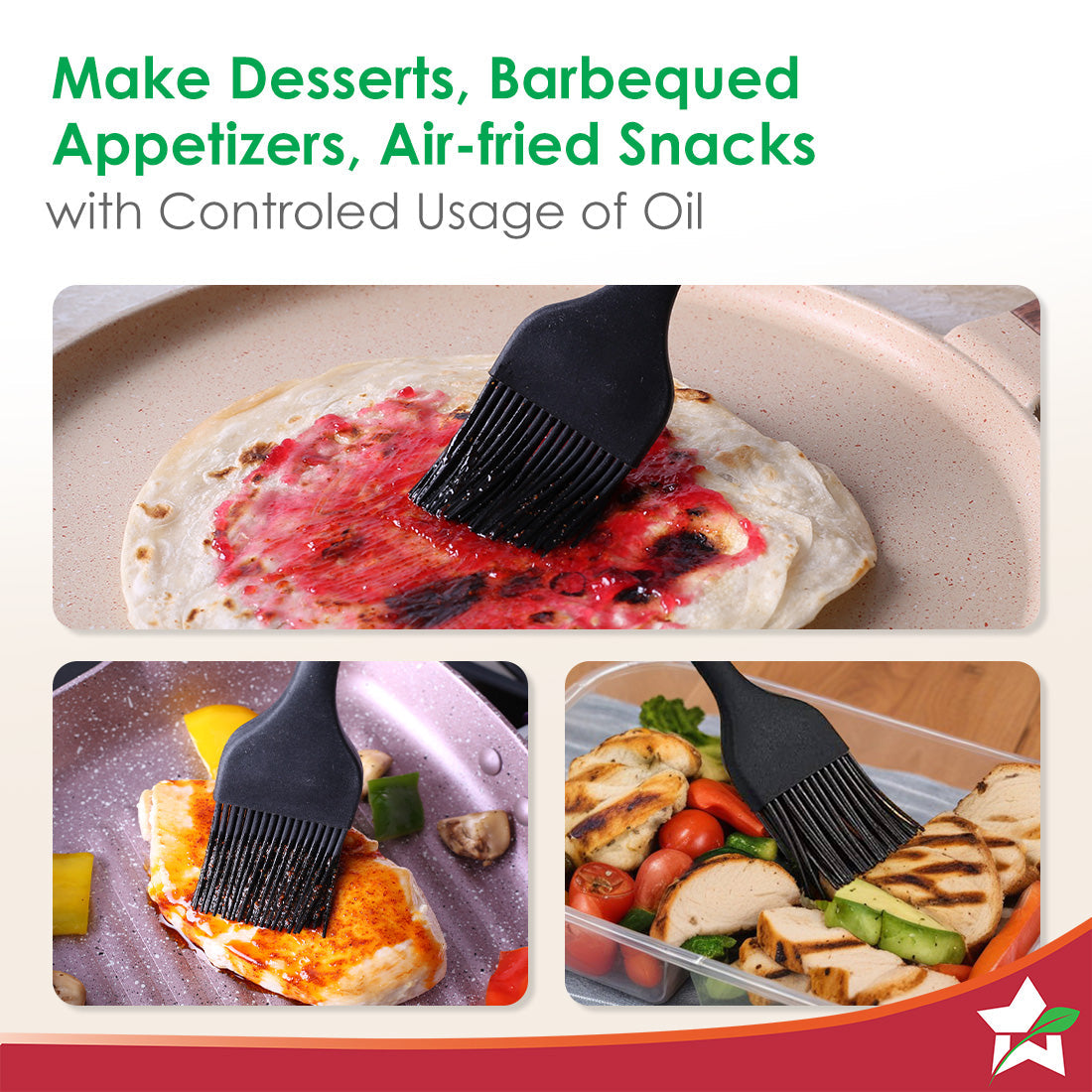 - Multi-Purpose: The basting brush has a high holding capacity of various liquids like marinades, sauces, glazes, butters and oils and hence is perfect for desserts, barbeques, grills and toasts. It is great for spreading oil on low-oil snacks like air-fried samosas or finger chips, or on shallow-fried snacks like aloo tikkis.