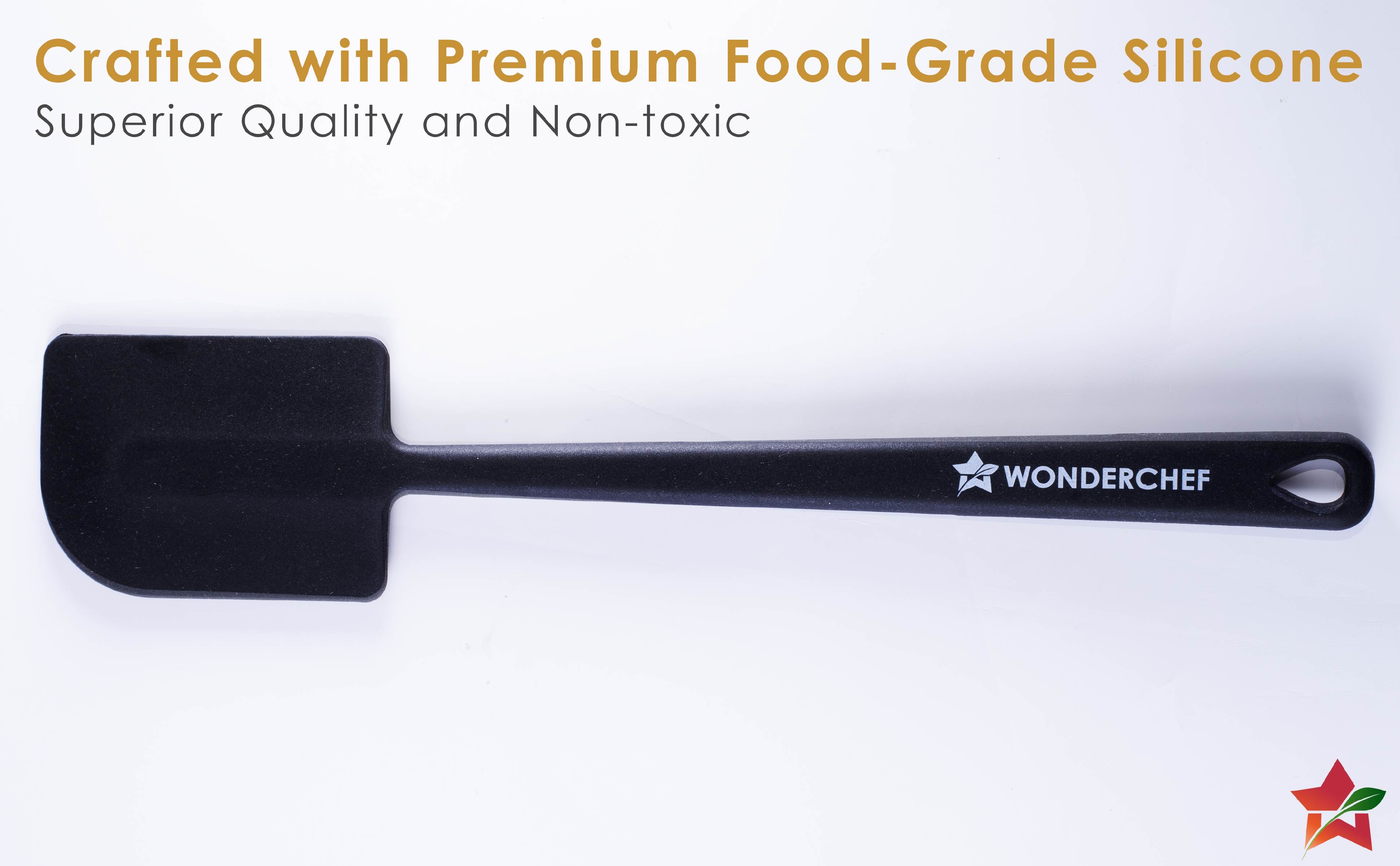 - Â Premium Food-Grade Silicone: Wonderchef Waterstone Silicone spatula is crafted from high-quality, non-toxic, and food-grade silicone with a stainless-steel core, ensuring absolute safety for your culinary needs. It is built to withstand frequent use.