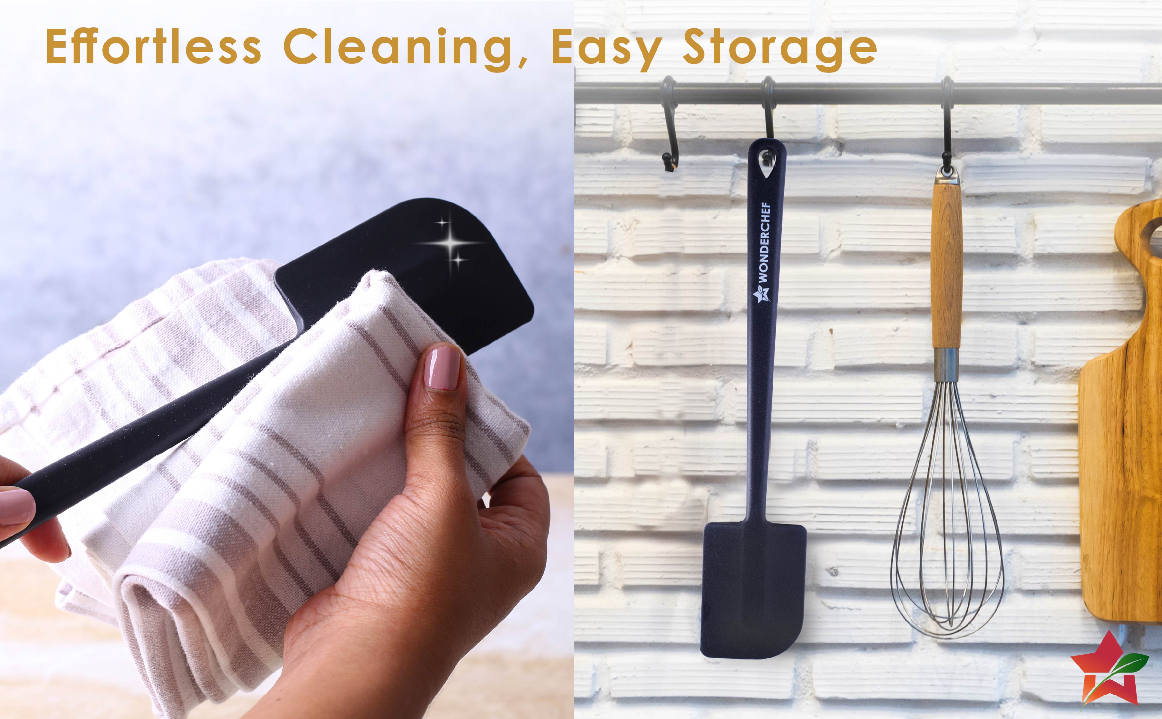 - Space Saving Design: The spatula comes with a hole on the handle, thus allowing you to just hang it on the kitchen wall, saving drawer/shelf space.