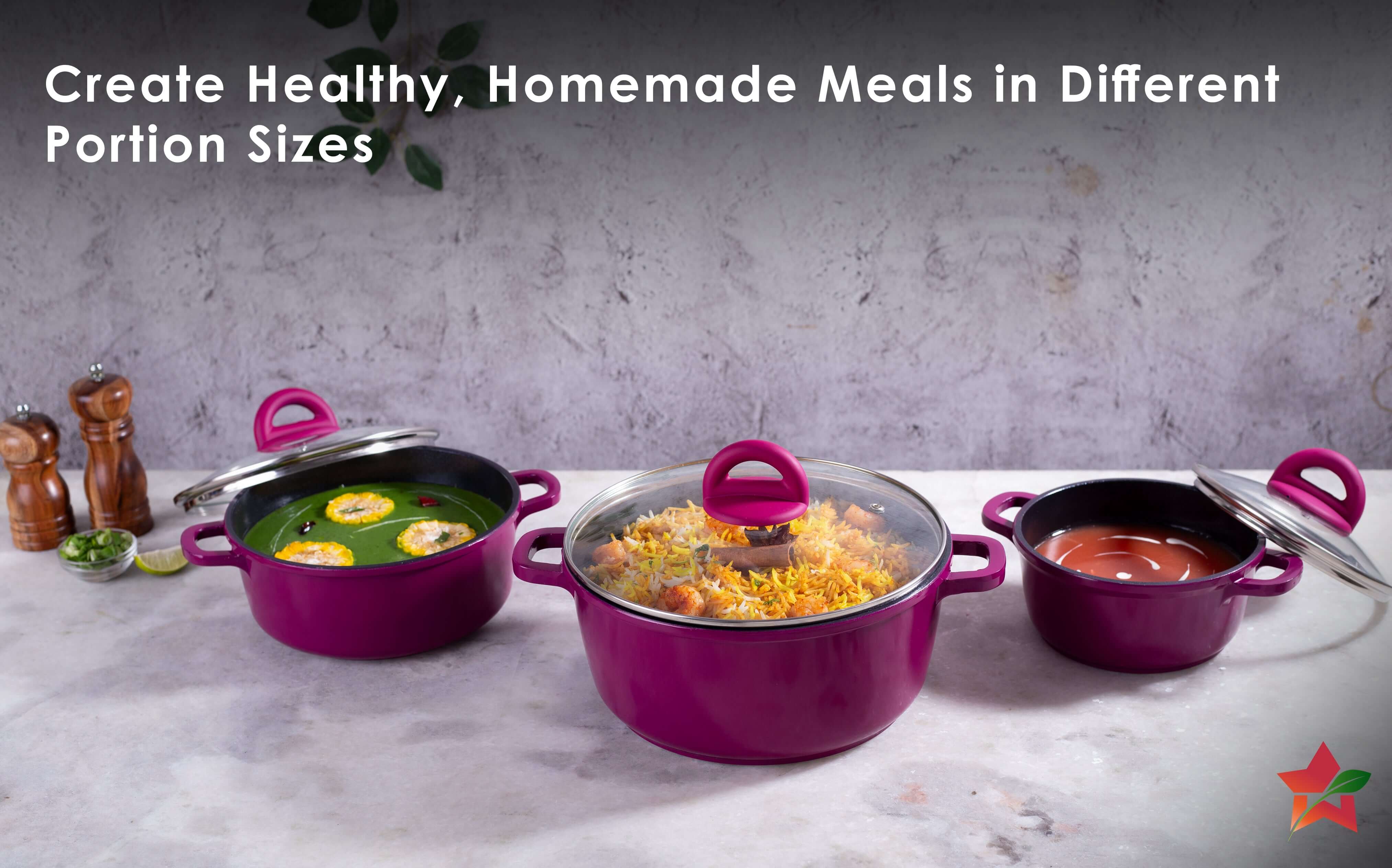 - Elegance in your kitchen: The cookware set comes in a classy pink colour with a stylish design, adding elegance to your kitchen and dining.