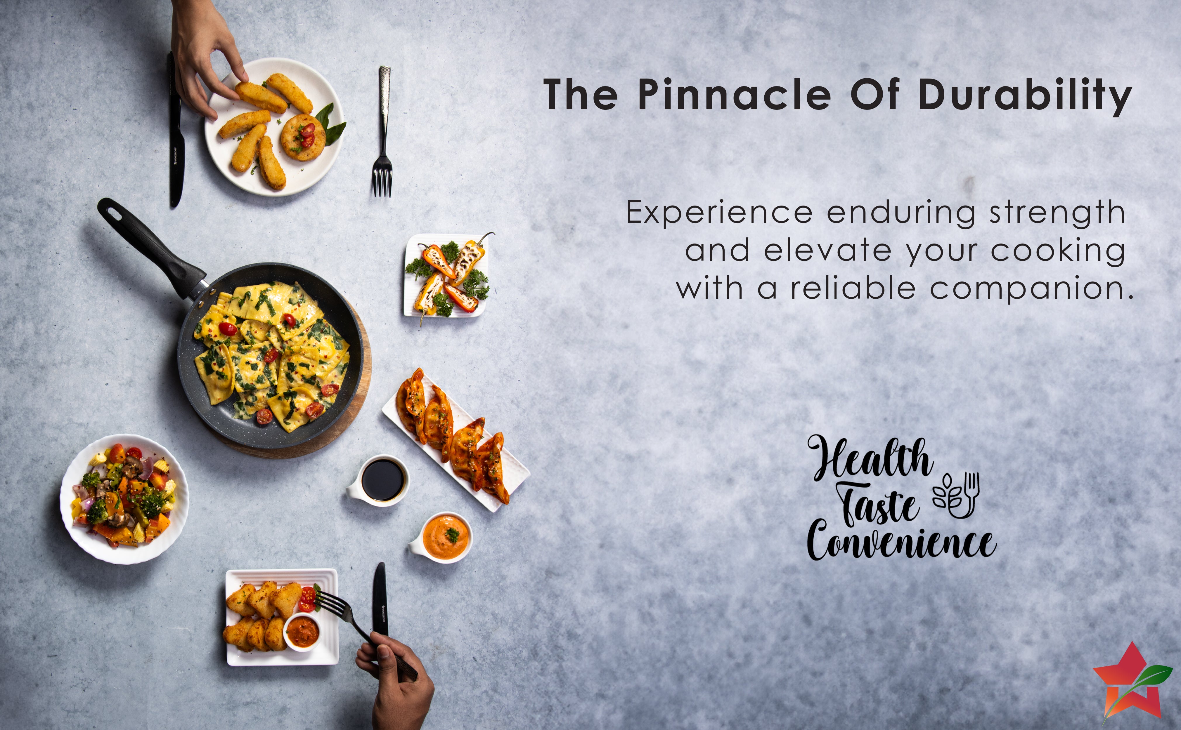 Duralite Pans are of the finest quality at an affordable price. These pans fulfill our dream of making healthy cooking possible in every home in the country. These pans are sturdy and solid as concrete, due to a special process of casting and solidifying molten metal. With a healthy German Meta-tuff non-stick coating, you will need minimum oil for cooking, thus making your food healthier!