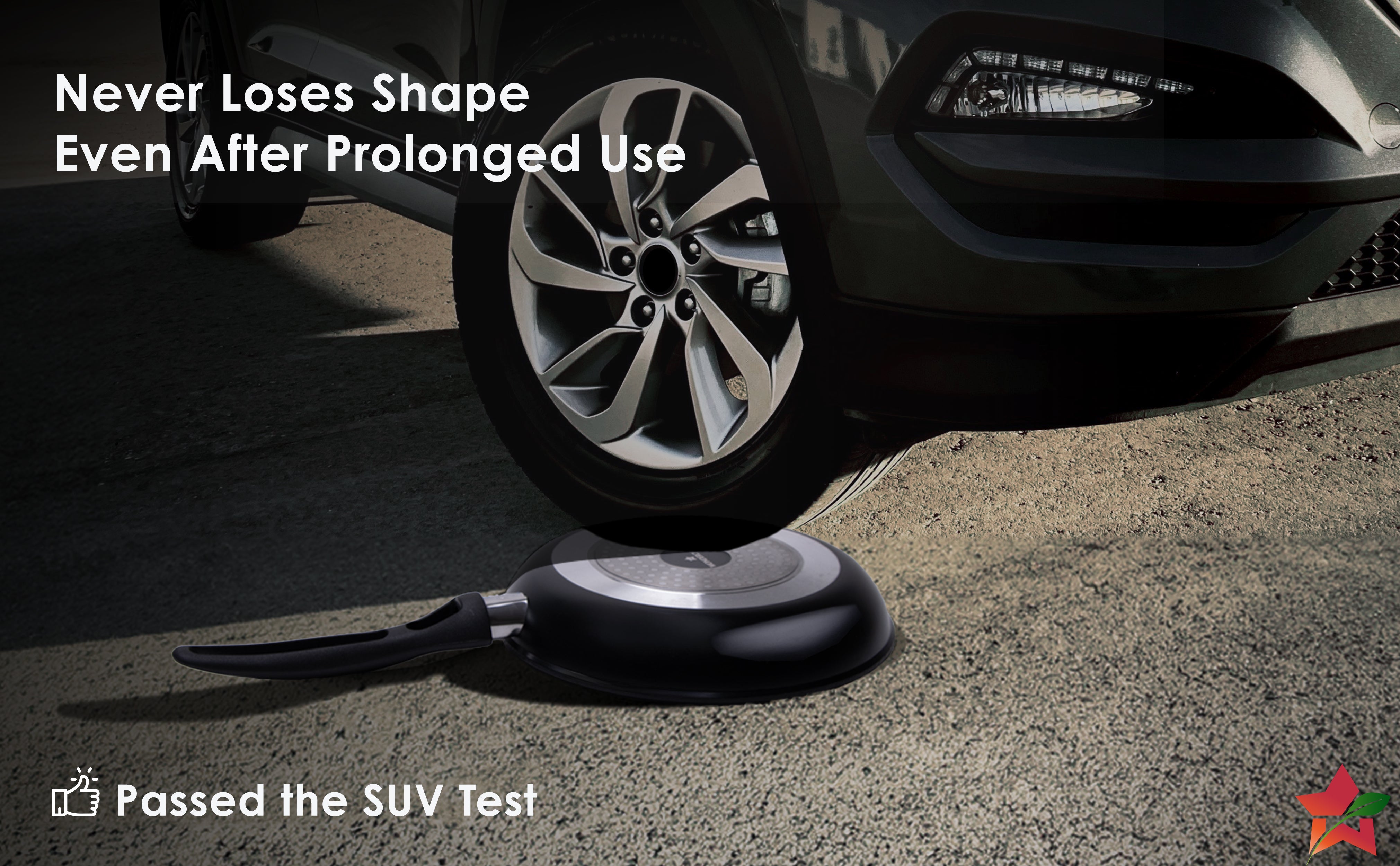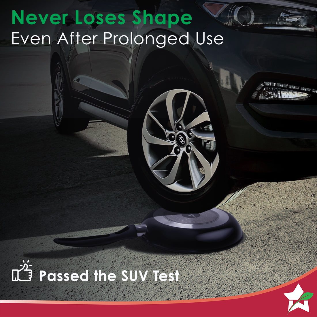 - Strong and Stable: Made of virgin aluminium, which is 9 times better conductor of heat than steel, this fry pan is sturdy, strong and stable on the cooktop.