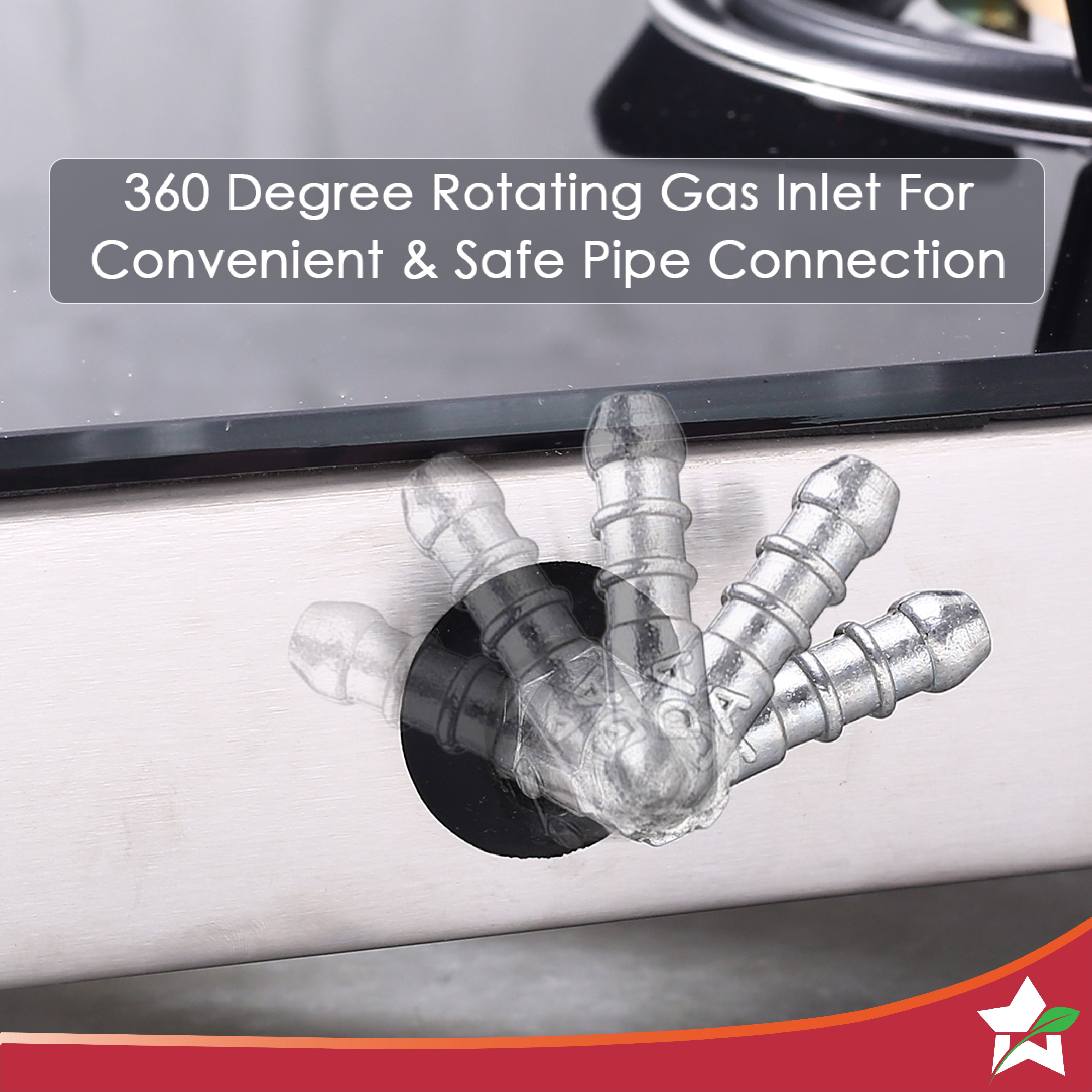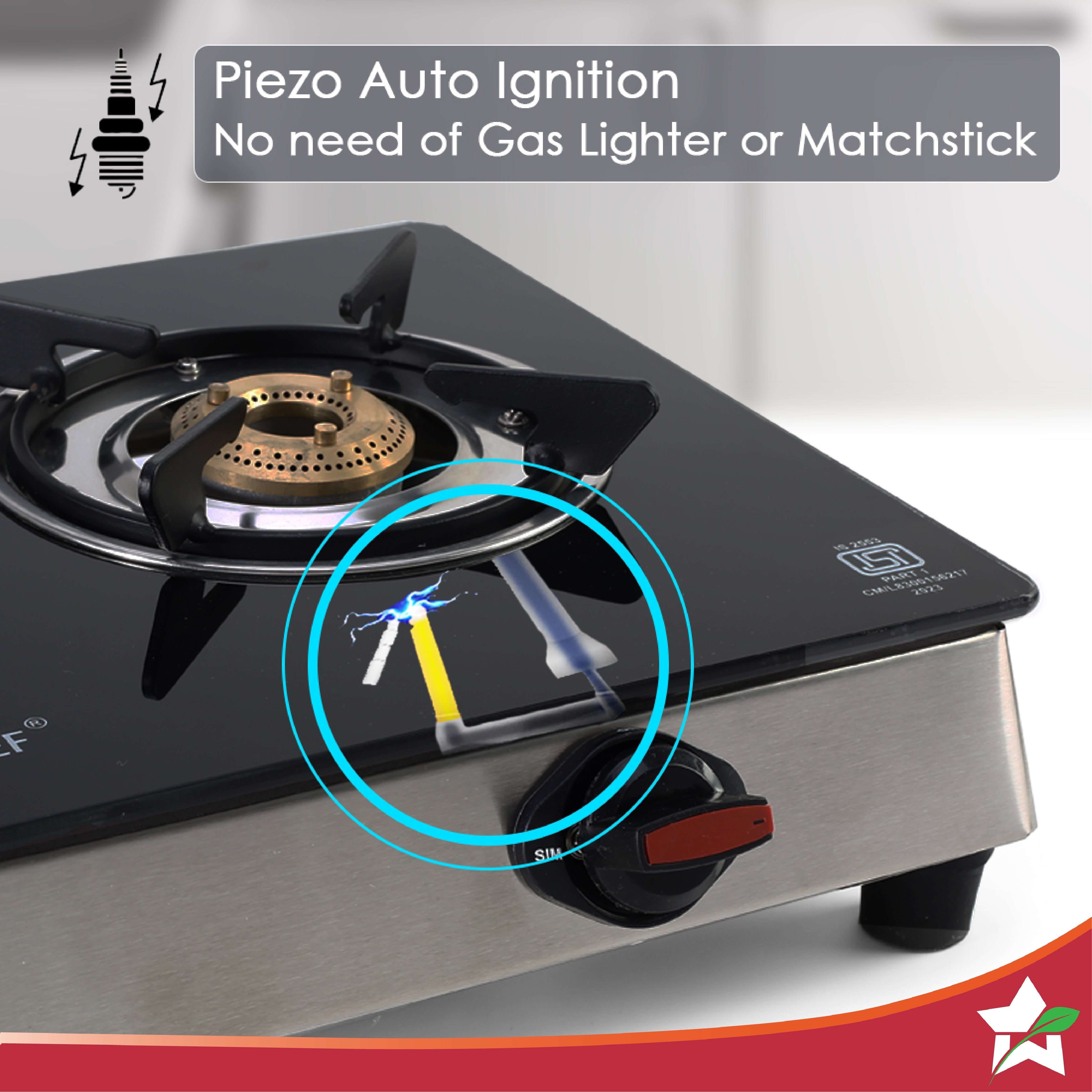 - No need for a gas lighter or match stick as the Piezo auto ignition ignites the burners as soon as the knob is turned and rotated anti-clockwise
