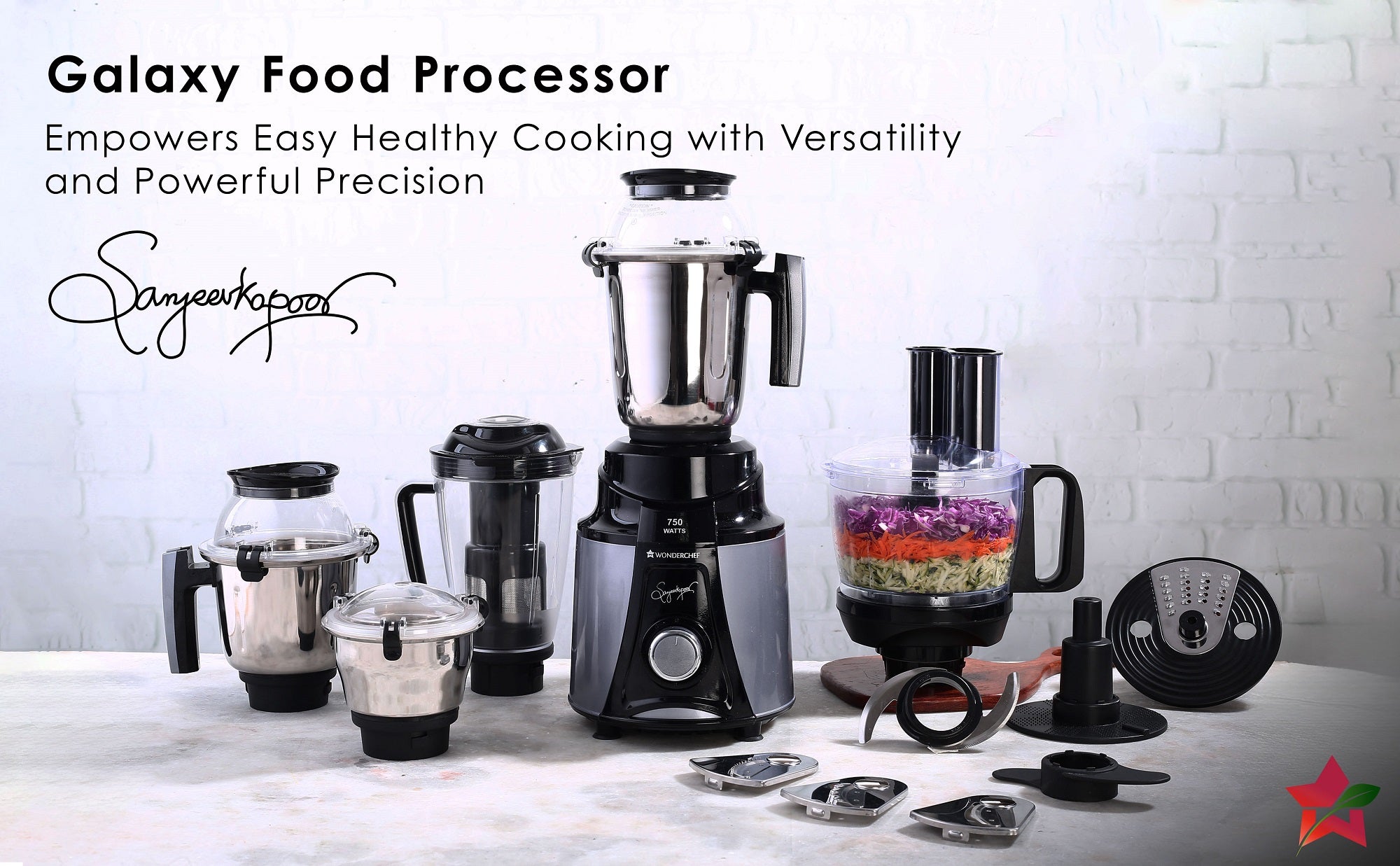 India’s finest 750W food processor with strong double-walled frontage, 100% copper motor, stainless steel jars and low-noise functioning. With high quality jars and blades, Galaxy Food Processor is meant to ease your cooking time and efforts! The food processor is accompanied by 4 additional jars, all of them specially designed to perform their own unique tasks. Make this product a part of your home and achieve the perfect masalas, chutneys and juices everytime!