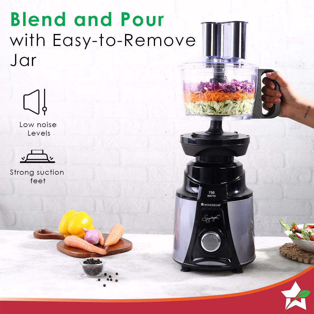 - 3-in-1 Centrifugal Juicing Jar: Enjoy instant juices, coconut and tamarind extracts and super fine blending.