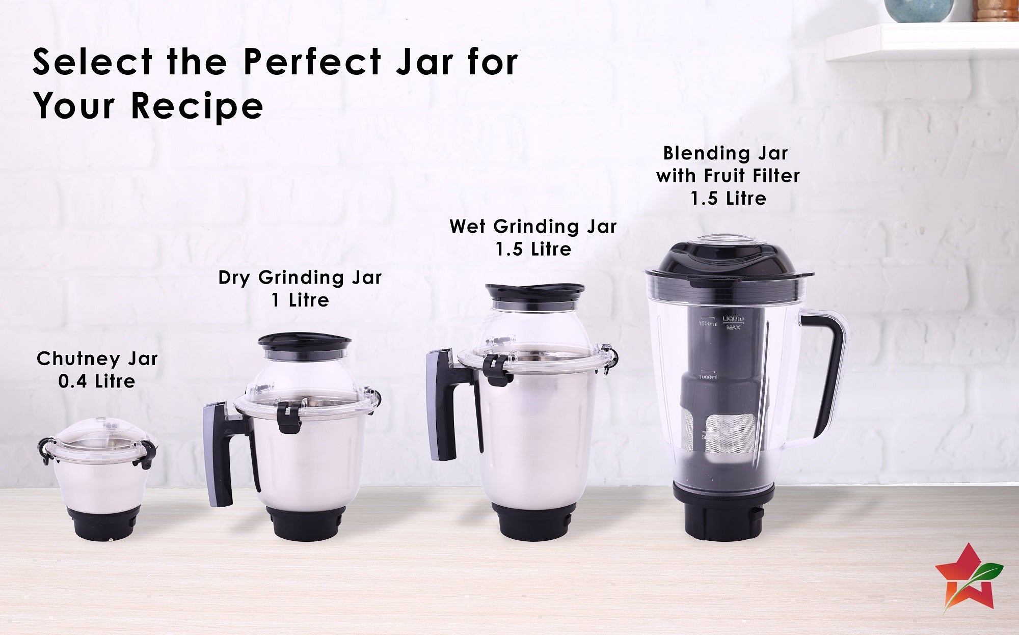 - Highly Efficient Jars: Superior quality food-grade plastic and stainless steel jars come with flow breakers for finest results.