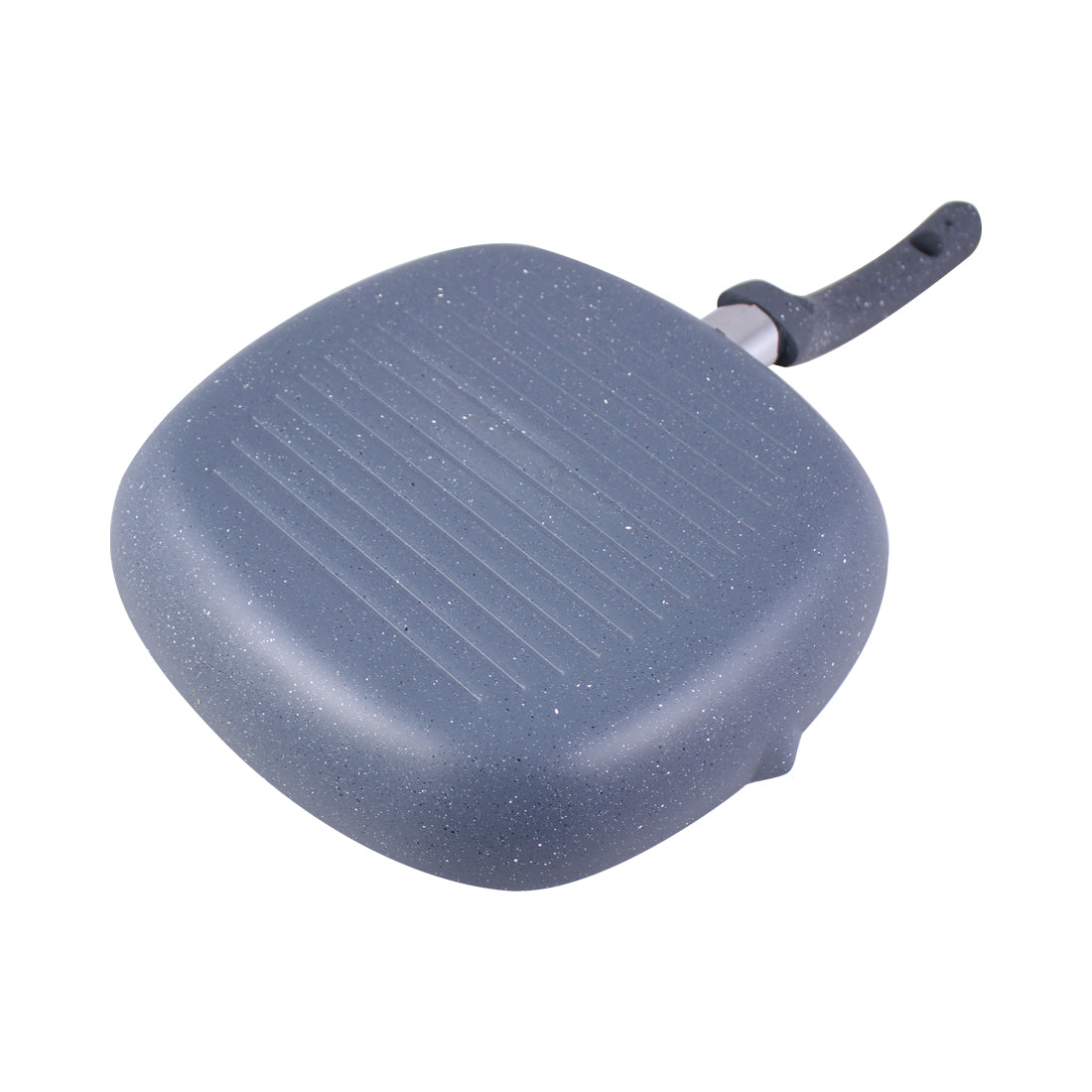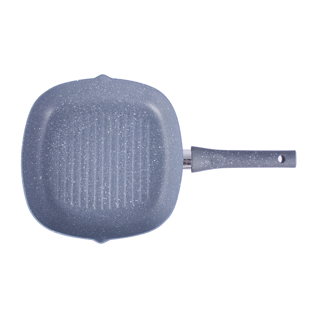 A. Wonderchef Granite Grill Pan is a designer forged pan made with pure grade virgin aluminium for quick and even heat distribution. It is ideal for everyday cooking and the grill pan is a great alternative to outdoor grilling. The perfect solution to cook healthy, low fat and delicious meals at home. It is strong and long lasting with 3.5mm thickness.The long handle is ergonomic and gives a comfortable secure grip. Ergonomically designed soft touch handles that do not heat up during cooking. It is 100% PFOA free, heavy metal and nickel free for your safety and has a health-friendly 5 layer Meta Tuff non-stick coating for daily use.