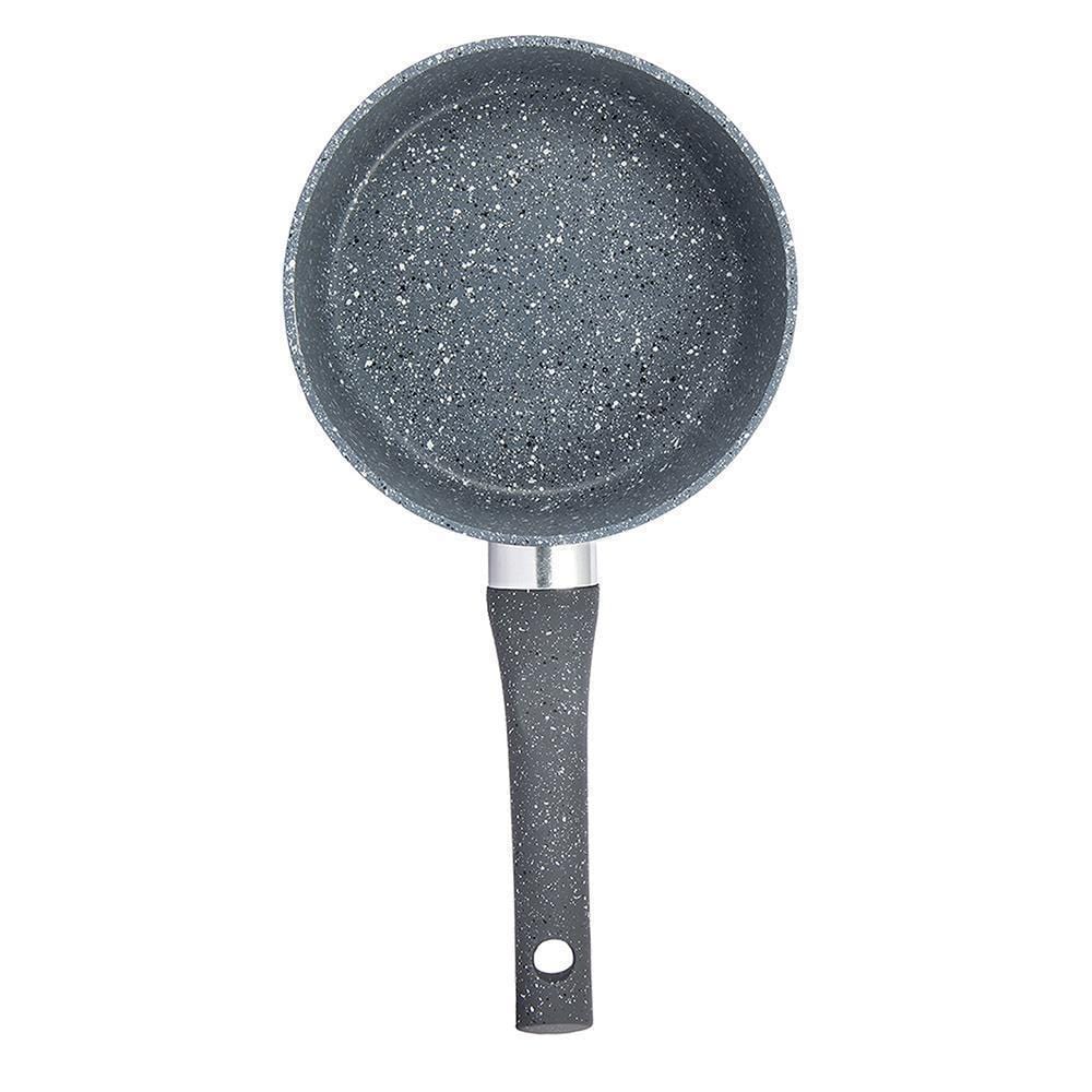 A. Wonderchef Granite Saucepan is a designer forged pan made with pure grade virgin aluminium for quick and even heat distribution. It is strong and long-lasting with 3.5mm thickness. It is ideal for everyday cooking and is a perfect solution to cook healthy, low fat and delicious meals at home. The long handle is ergonomic and gives a comfortable secure grip. Ergonomically designed soft-touch handles and knob that do not heat up during cooking. It is 100% PFOA free, heavy metal and nickel free for your safety and has a health-friendly 5 layer Meta Tuff non-stick coating for daily use.