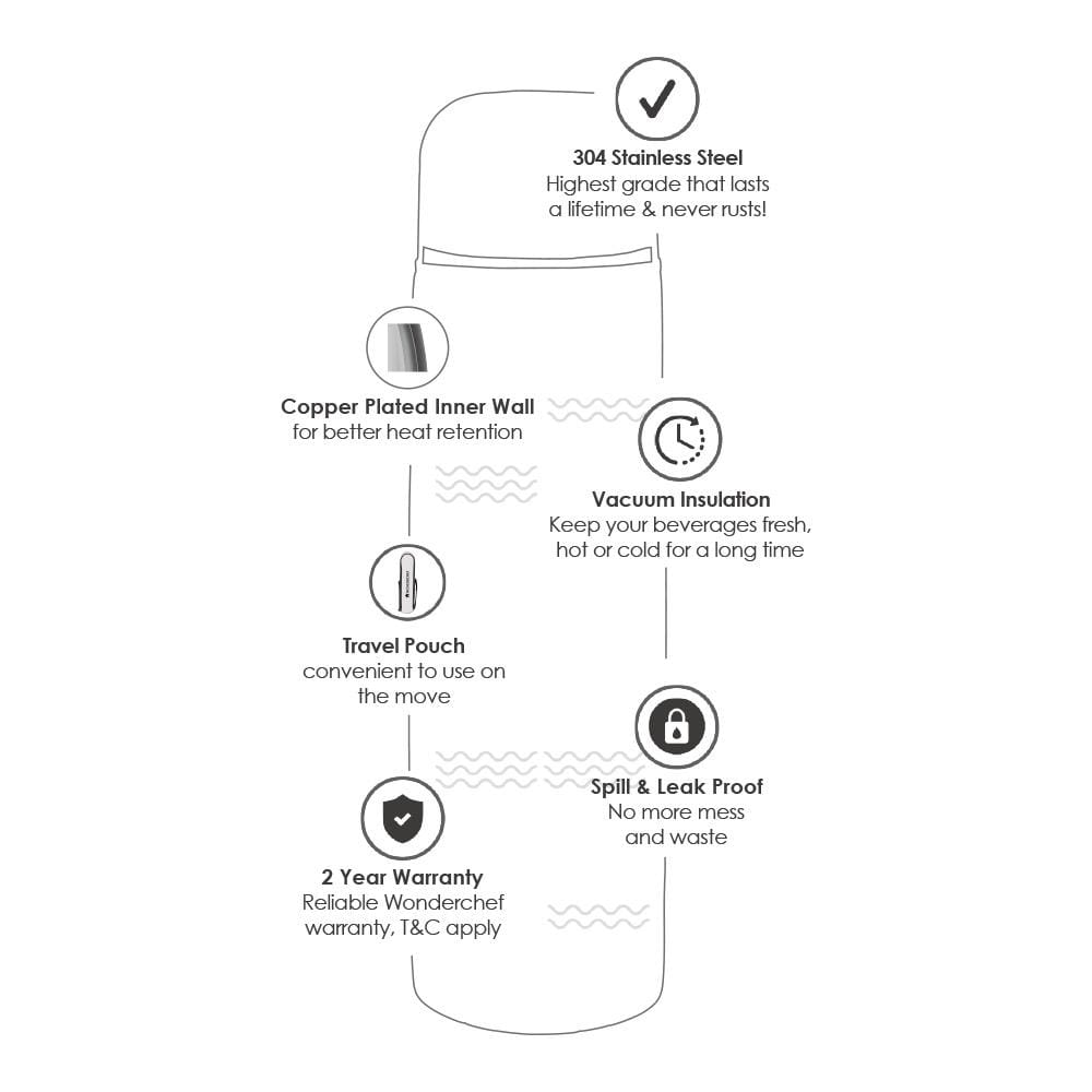 - Vacuum Insulation – keep your beverages fresh, hot or cold for a long time