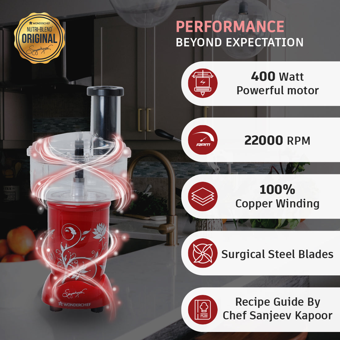 - Powerful Motor: The compact yet powerful machine grinds the toughest of chutneys and masalas, and ensures nutrition extraction from all fruits and veggies thanks to its incredibly high speed of 22,000 RPM, which is almost twice that of normal mixer-grinders