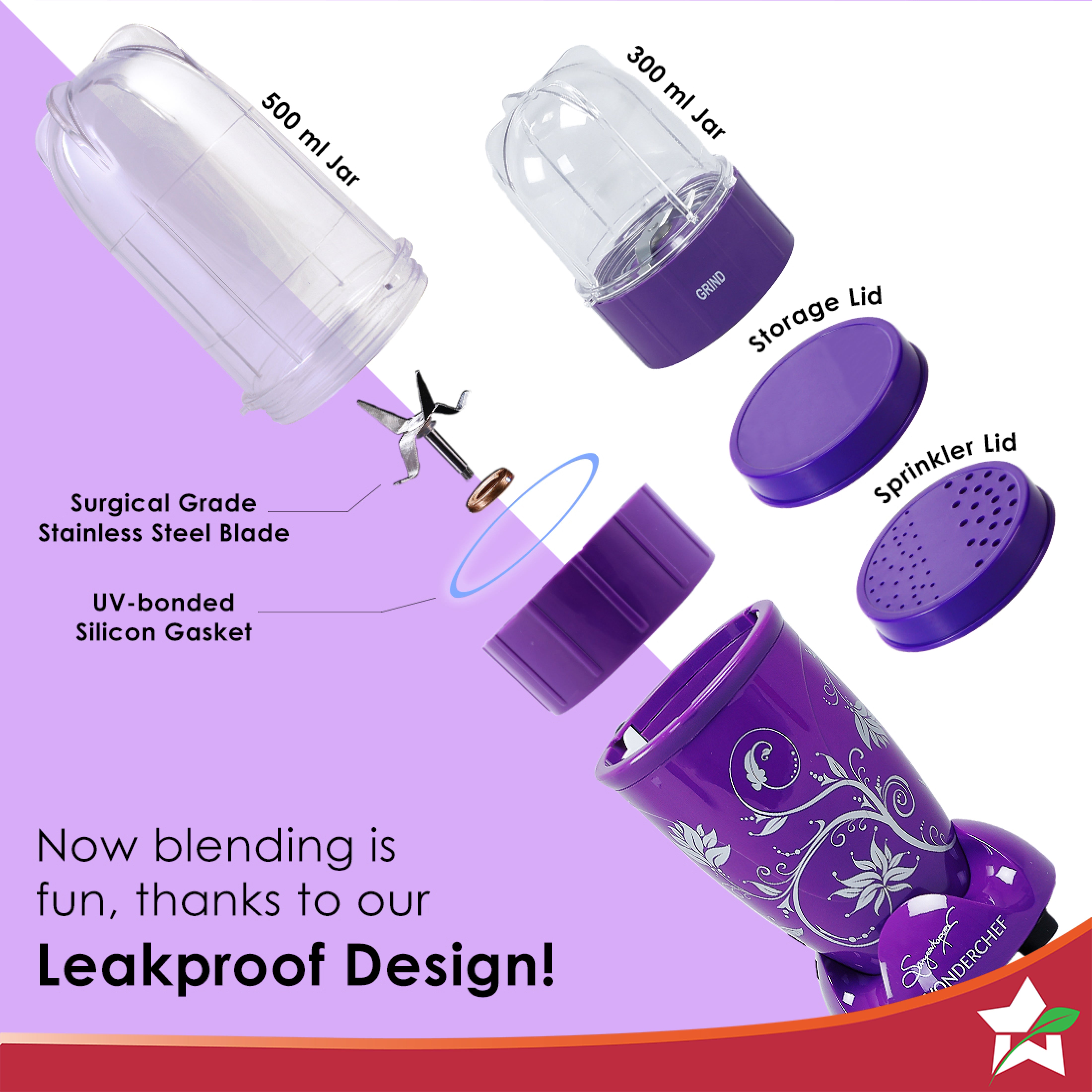 - Transparent & Unbreakable Jars: Monitor the progress without opening the jars. Use the tall jar (500ml) with a 4-wing blade for mixing-blending and the short jar (300ml) with a 2-wing flat blade for grinding