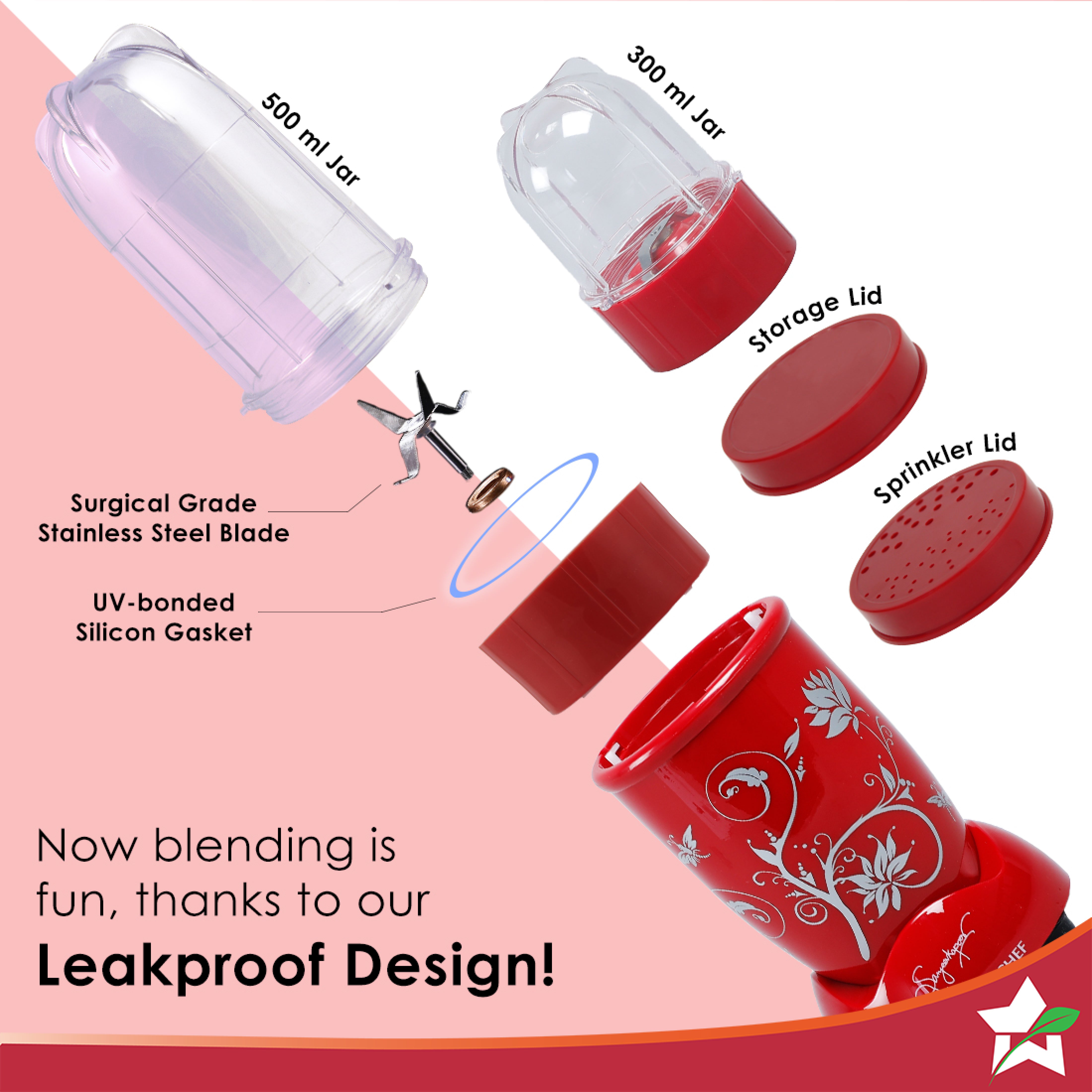 - Jar capacity 300ml(Short Jar) & 500ml(Long Jar).