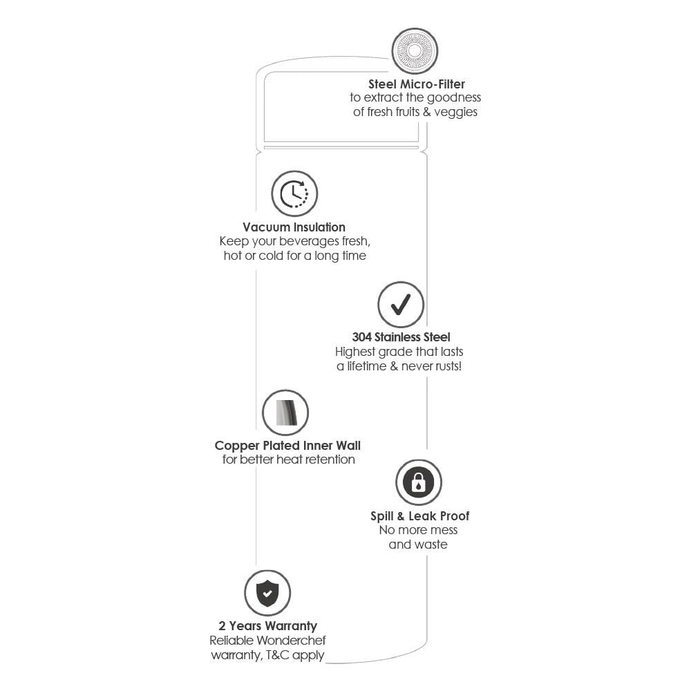 - Steel Micro-filter –To get nutritional and filtered infused water
