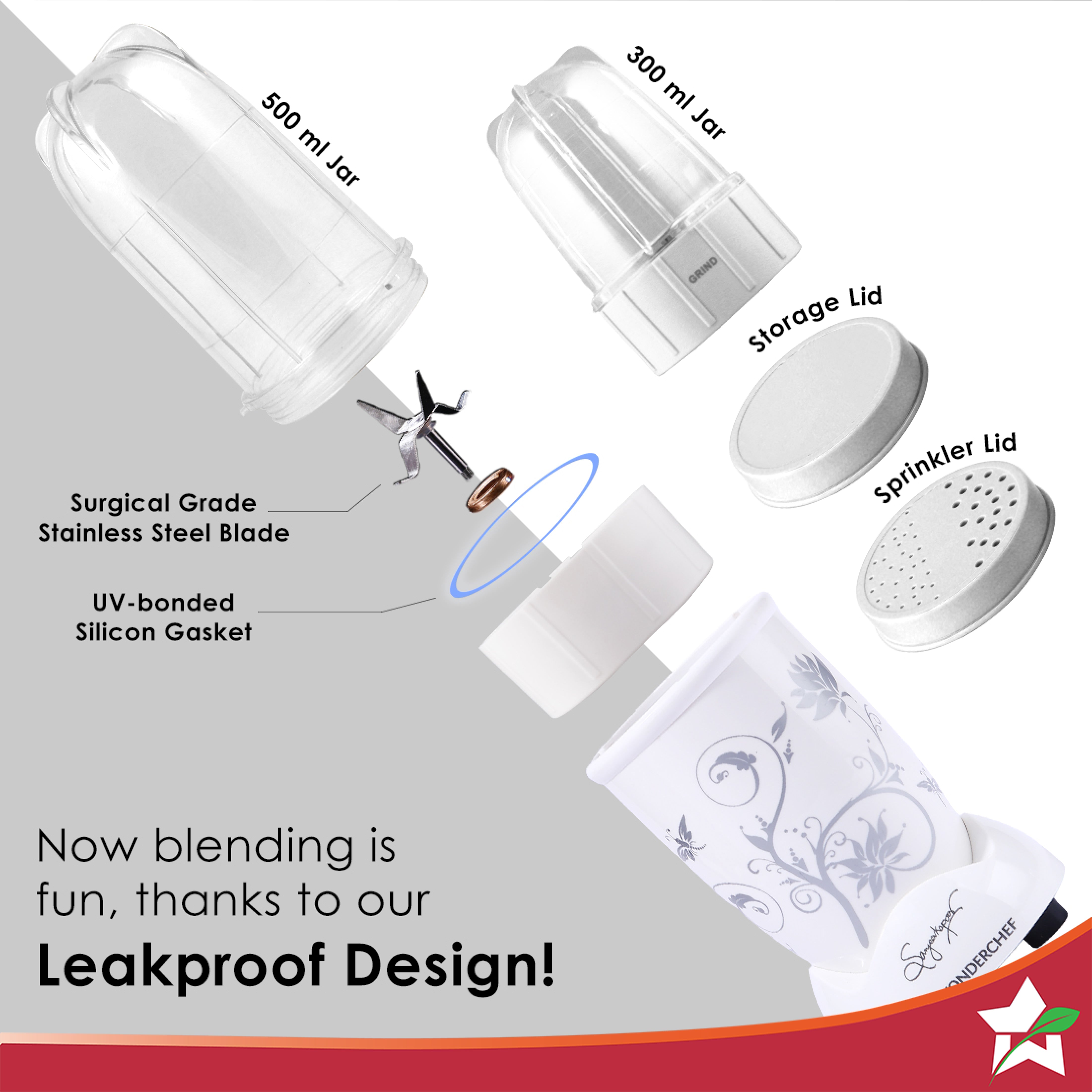 - Transparent & Unbreakable Jars: Monitor the progress without opening the jars. Use the tall jar (500ml) with a 4-wing blade for mixing-blending and the short jar (300ml) with a 2-wing flat blade for grinding