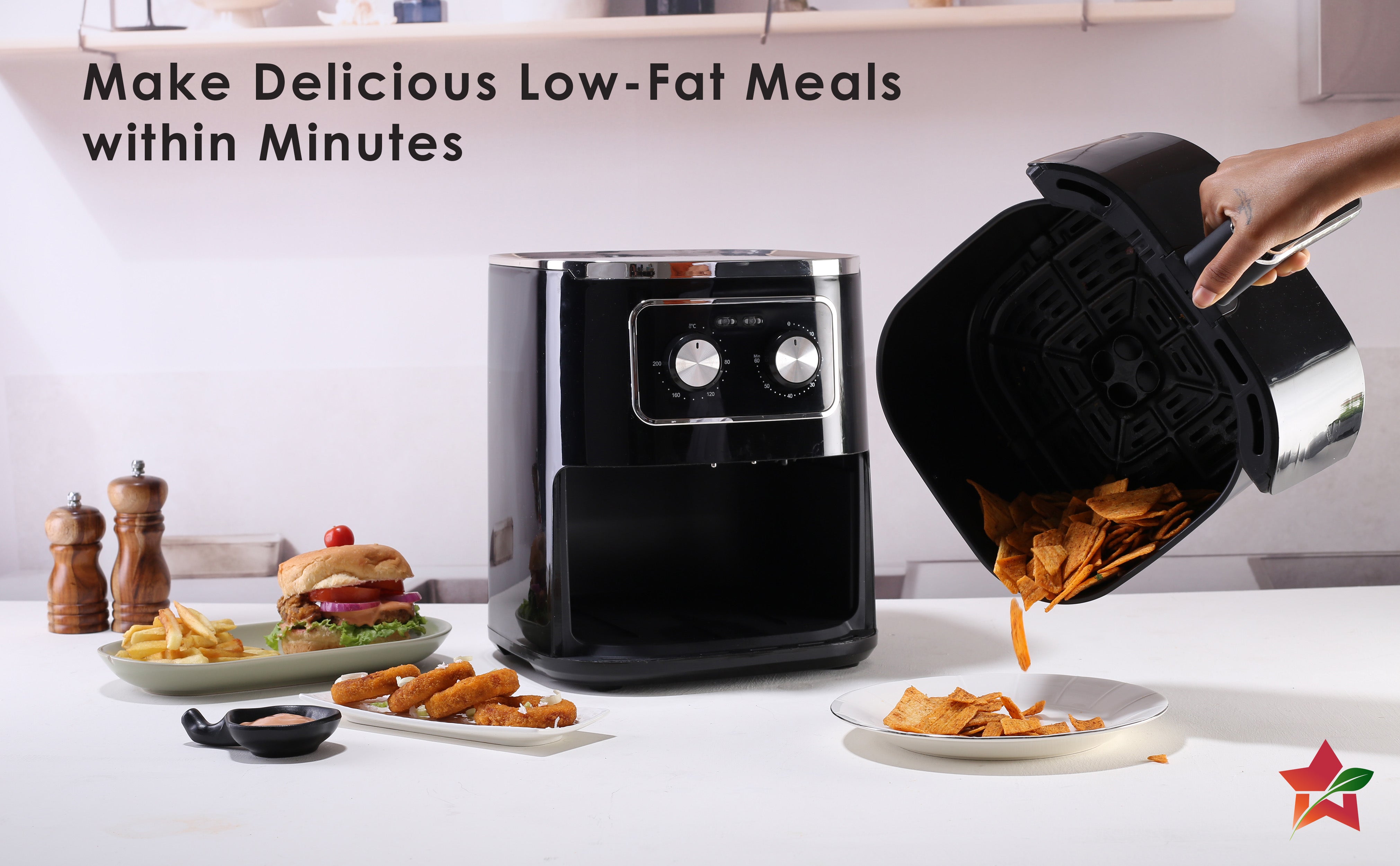 - Capacity: With a spacious 5 L cooking basket, our air fryer is perfect for large family gatherings, accommodating a variety of dishes for everyone to enjoy.