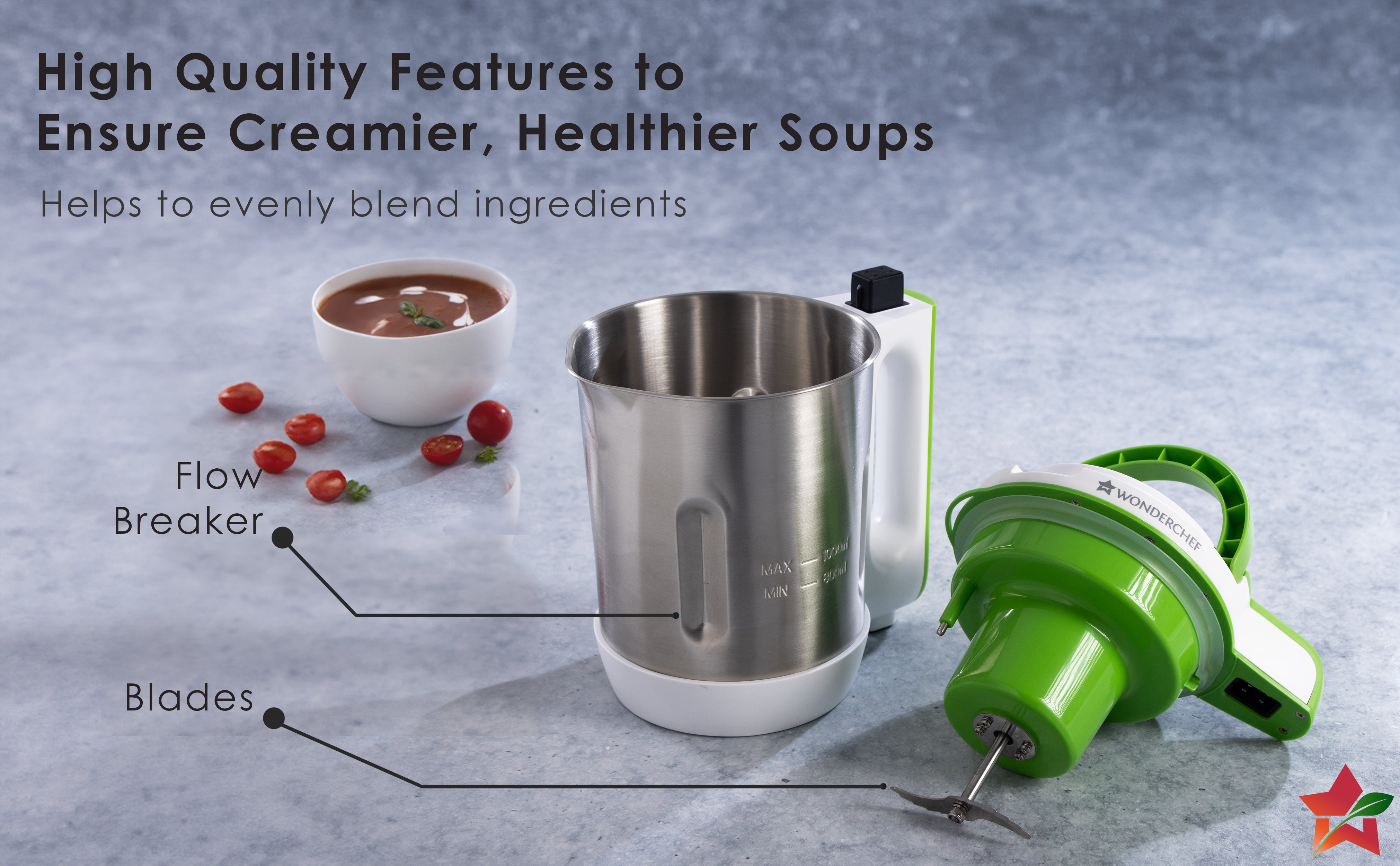 - Easy and Hassle-free Soup Making: The Wonderchef Automatic Soup Maker makes it easy to create delicious soups with just a click of a button, so you can focus on other tasks while your soup cooks. No more standing over a hot stove; this machine does it all for you!
