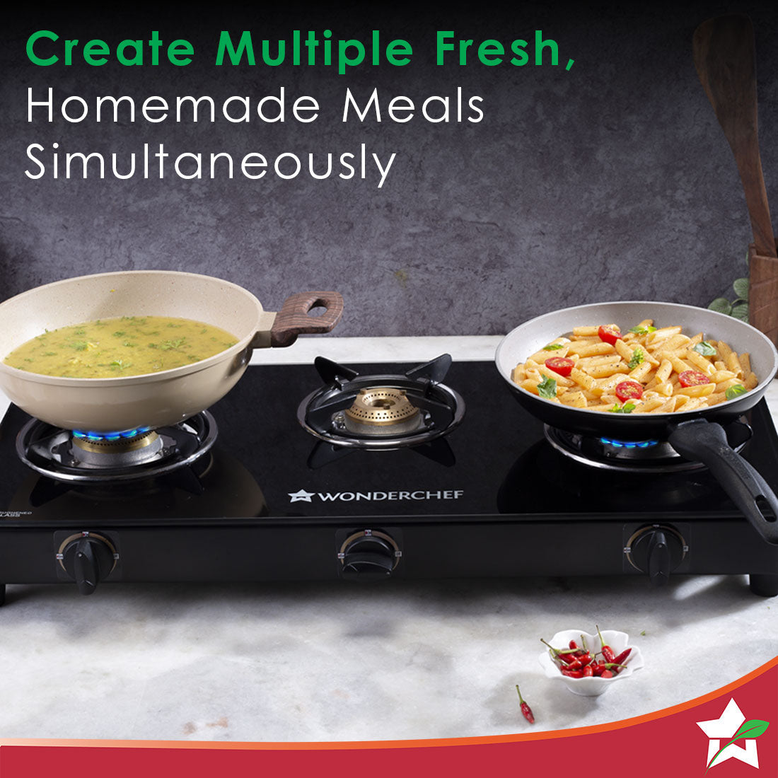- EFFICIENT COOKING – Highly efficient tri-pin brass burners provide fuel-saving and uniform heating, allowing you to cook faster and more efficiently. 3 burners (2 medium, 1 small) cater to different cooking needs.