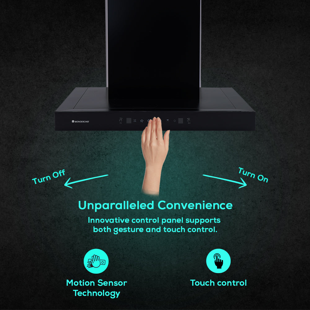 This attractive chimney comes with an amazing feature called motion sensor touch control for more convenience.