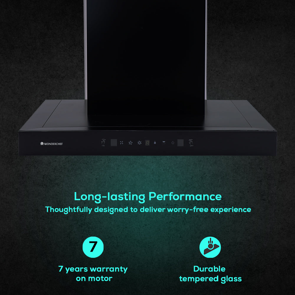 Wonderchef chimneys use tempered glass for your safety and long-lasting performance of the chimney.