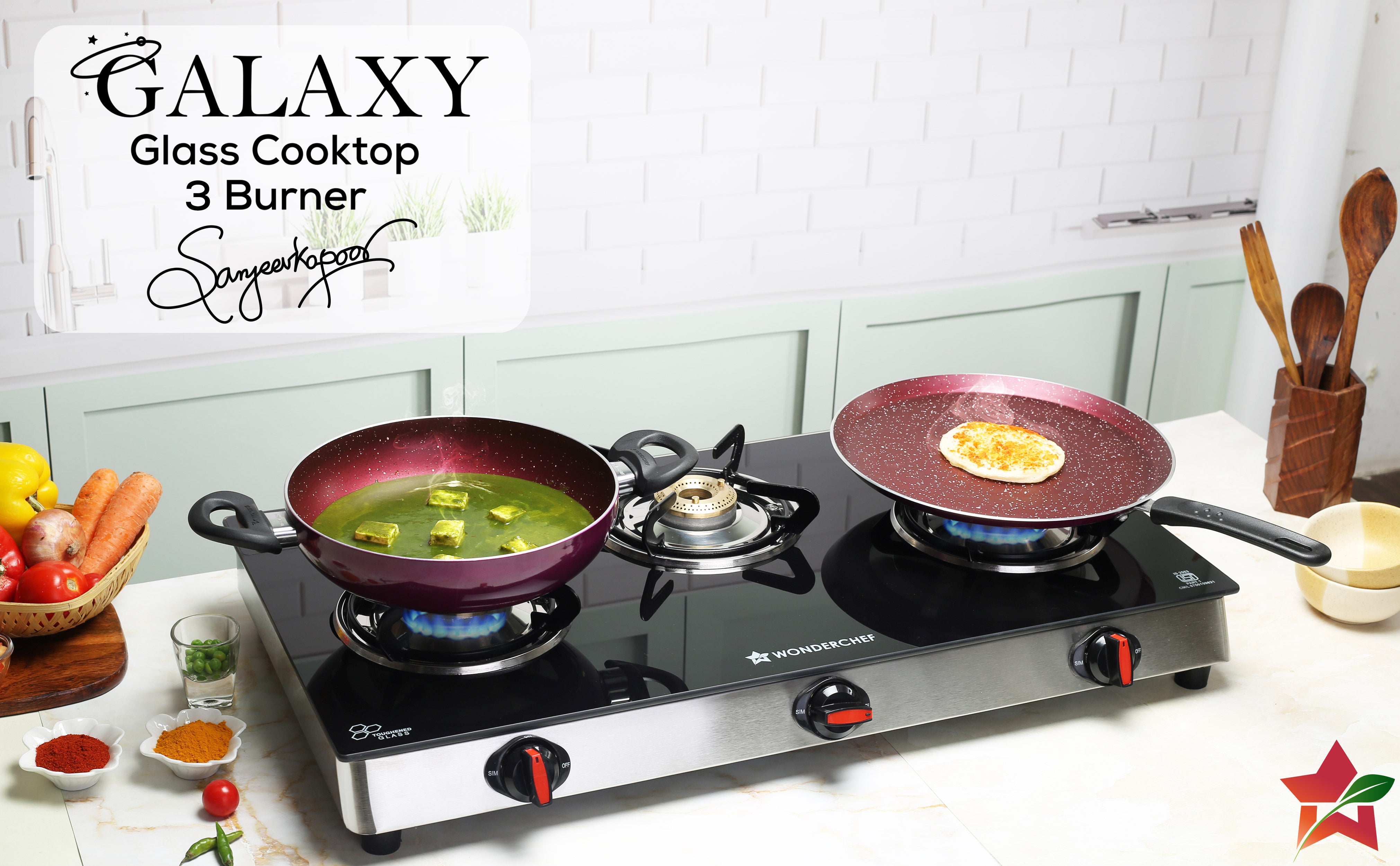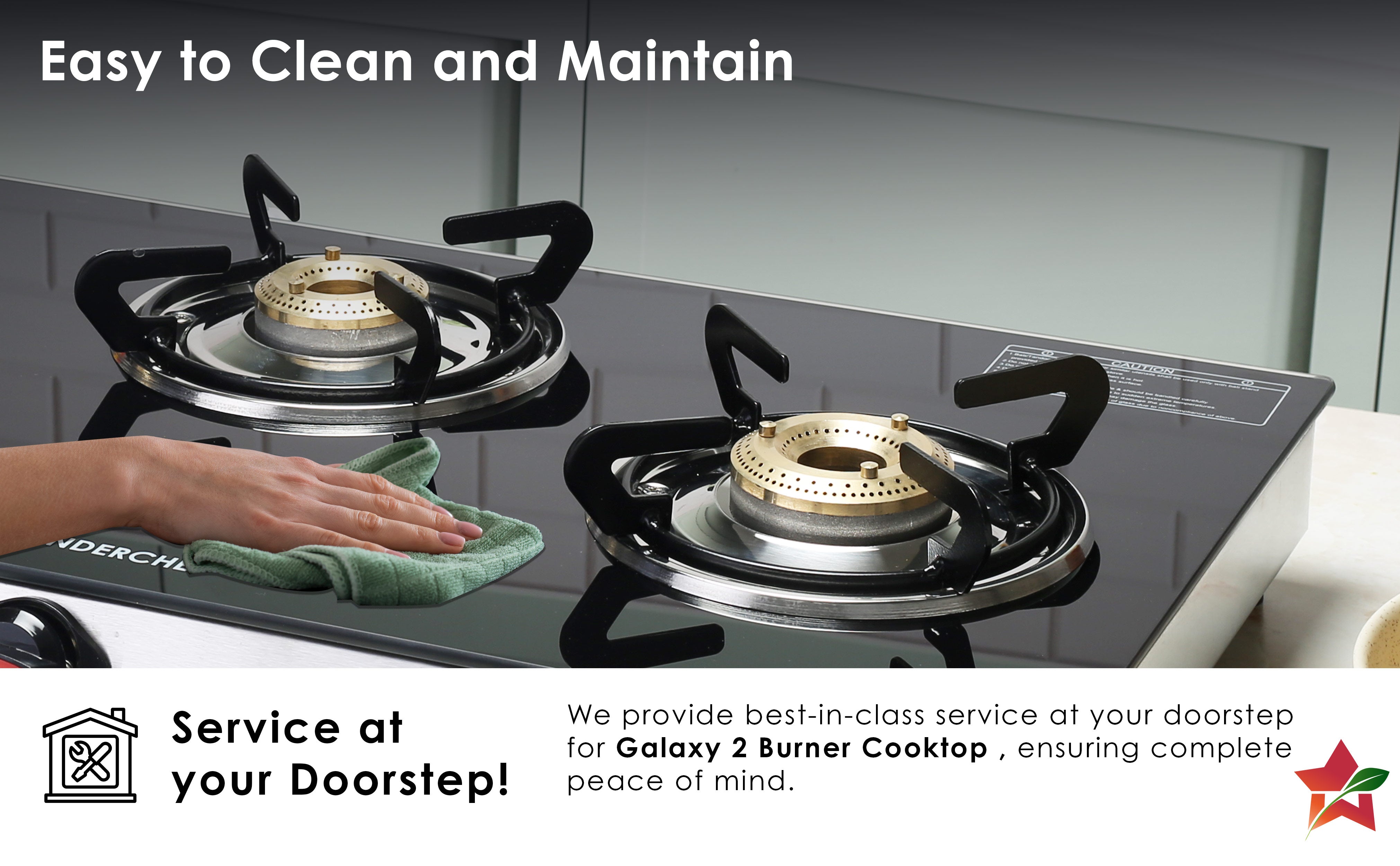 The most suitable cooktop for Indian kitchens, Galaxy Cooktop has a premium finish glass top which is sturdy and easy to clean. Packed with superior quality parts including brass burners, cast-iron pan support, these cooktops are made to deliver a long lasting performance!