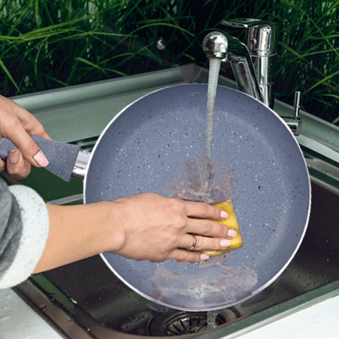To clean, wash cookware in warm soapy water rinse and thoroughly dry before storing. It can easily be washed by hand and is even dishwasher safe.
