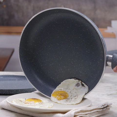 Enjoy the pleasant cooking experience with the Granite non-stick cookware set. Featuring finest quality Meta Tuff 5 layer coating; the Fry pan with lid and dosa tawa will add beauty to your kitchen. This Granite cookware set is made from pure grade virgin aluminium which is 9 times better conductor of heat than steel. Time to cook healthy, stay fit and get stellar performance every time you cook with Granite set of cookware by Wonderchef.