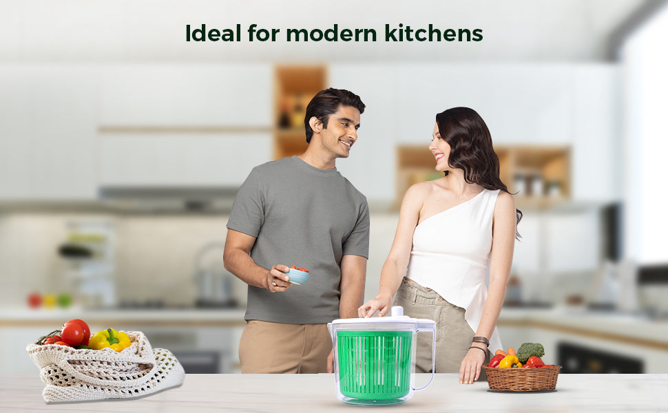 Wonderchef Vegetable Cleaner and Salad Spinner is your first step towards healthy eating. It uses the centrigual force to throw out excess water and pesticides from your greens and other vegetables, leaving them absolutely safe for consumption, even in raw form! Don’t just clean, as this salad spinner also helps mix your salads to perfection, spreading that tasteful dressing evenly through all vegetables and other ingredients! Make this a part of your journey to healthy eating!