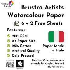 Brustro Artists Watercolour Paper, 300 GSM, A3-25% Cotton, Cold Pressed, 5+1 Sheet