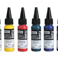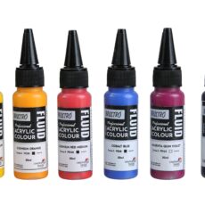 Brustro Professional Artists ’ Fluid Acrylic 20 ml High Chroma Set of 6 (Cad Orange,Cad Yellow Medium,Cad Red Medium,Cobalt Blue,Dioxazine Purple,Magenta Quinh Violet) with Pouring Medium 200 ml