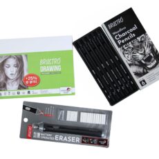 Brustro Slim Battery Operated Eraser + Graphite Pencil Set of 12 + A5 wiro Sketchbook