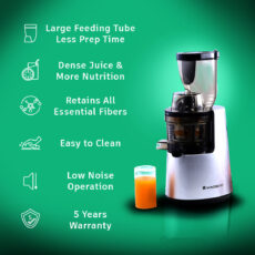 V6 Cold Press Slow Juicer, Full Fruit, High Juice Yield, Powerful AC motor, Slow Squeezing Technology, 200W